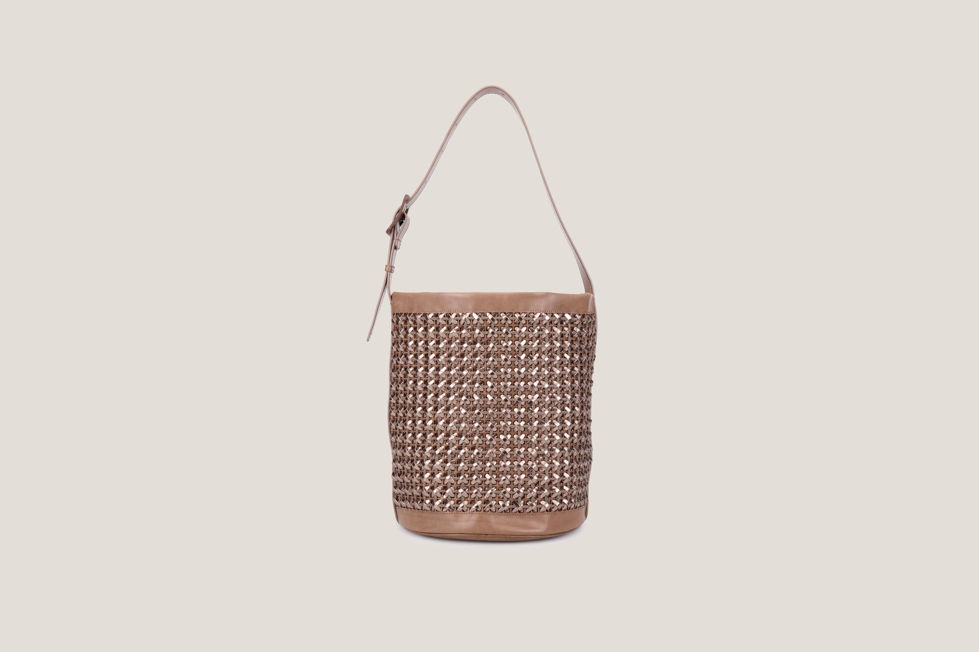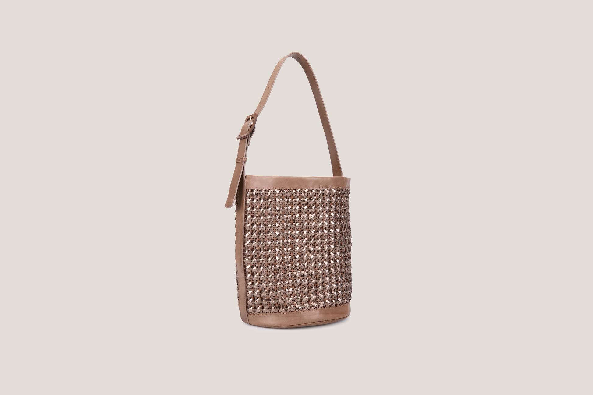 Secchiello in pelle di vacchetta conciata al vegetale e pelle di vitello laminata.